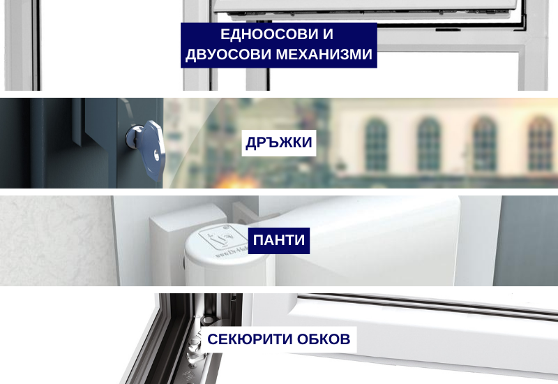 Обков за PVC врати и прозорциСекюрити обков, панти, дръжки